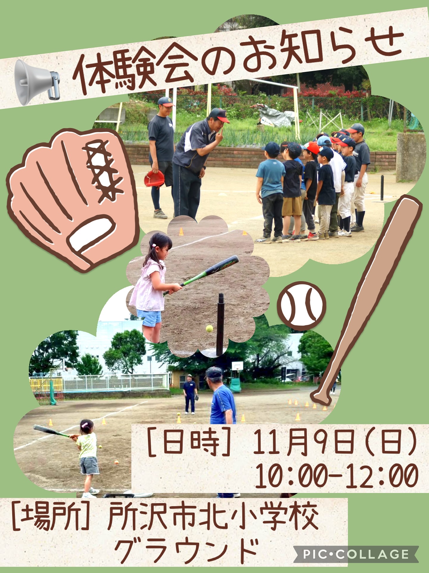 11月9日(日)の10時から北小学校で野球体験会を開催します。